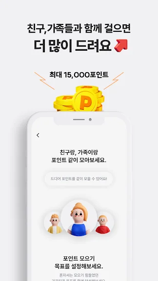 · 심심하지 않도록, 친구와 함께! 친구와 걸음 수 합산하고 포인트 추가 적립!