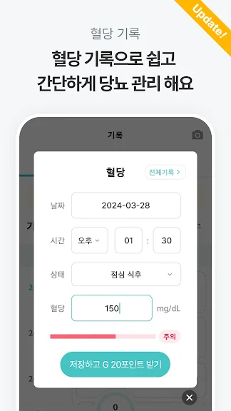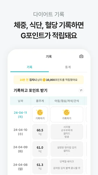 - 기록 할 때마다 포인트 쌓이니까 귀찮은 혈당 관리를 꾸준히 할 수 있어요
