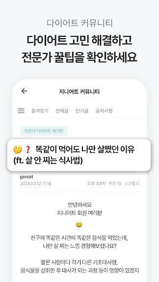 - 같은 목표 가진 다른 다이어터들과 함께 다이어트 고민 나눠요
