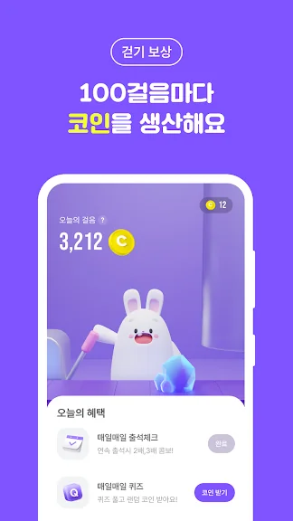 - 걸음 수에 따라 칩과 코인을 더 많이 벌 수 있는 '버니와 함께 걷기'