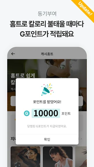 - 캐시홈트로 홈트레이닝 완료할 때마다 최대 1만 포인트가 쌓여요