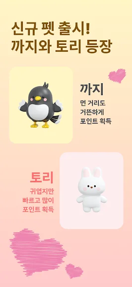 펫 목표 미션을 달성하고, 펫을 진화시켜보세요. 더 많은 리워드를 더 빠르게 가져와요.