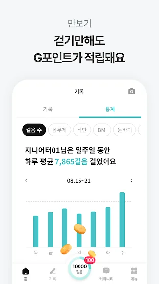 2) 지니어트 - 홈트, 다이어트, 혈당 기록, 만보기 앱 어플 스크린샷