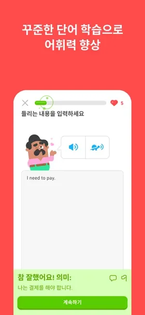 • 진도를 추적하세요. 매일 연습하는 습관을 들이면 재미난 보상과 업적을 획득하여 어학 학습 목표를 향해 나아갈 수 있답니다!