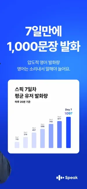 스픽은 현존하는 가장 빠르고 정확한 음성 인식 기능과 인공지능 기술을 활용한 영어 학습 앱으로, 기존에 없던 영어 회화 학습법을 선보입니다.