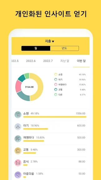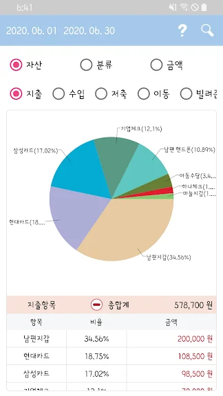 - 자산, 카테고리, 금액별로 나눠서 통계를 확인할 수 있습니다.