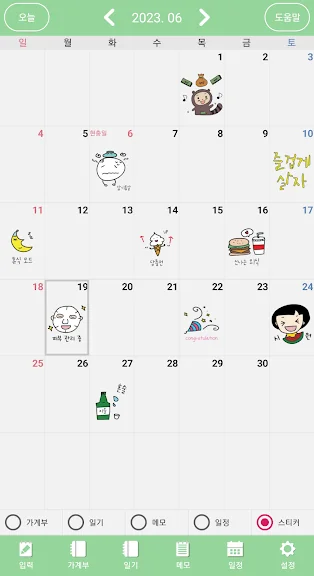 - 다양하고 귀여운 스티커를 달력화면에 표시할 수 있습니다.