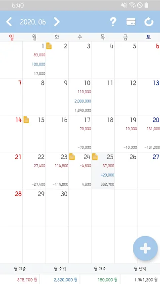 - 캘린더에서 실시간으로 가계부 확인 가능