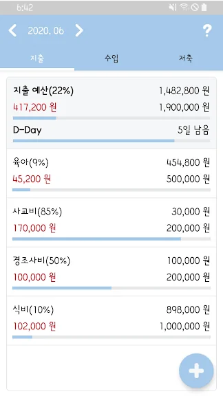 - 분류(카테고리) 별로 예산을 추가해 매달 지출, 수입, 저축을 관리할 수 있습니다.