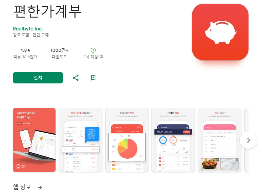 아래는 편한가계부 어플에 대한 스크린샷 정보입니다.