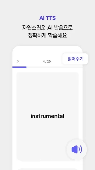 • 기기에 내장된 음성 엔진(TTS, Text To Speech)으로 단어를 읽어줄게요.