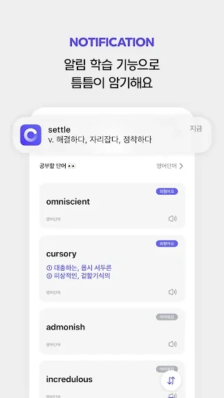 • 원하는 시간에 단어 알림을 받을 수 있어요.