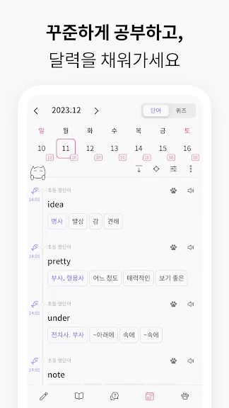 • 꾸준히 새로운 단어를 공부하며, 달력을 가득 채워보세요.
