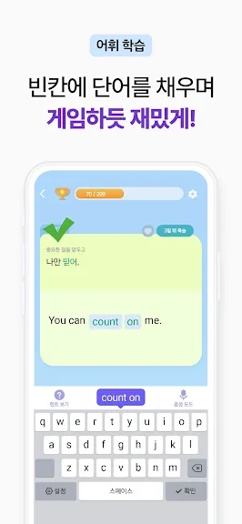 스피킹 모드로 학습하면 회화 연습도 할 수 있어요.