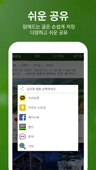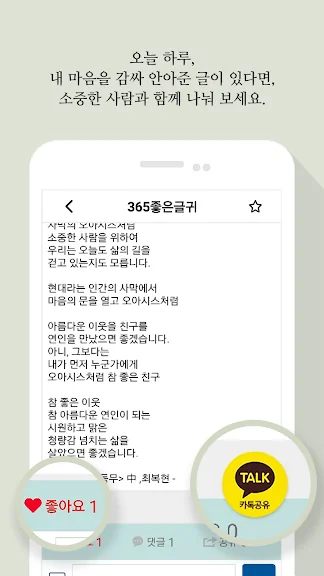SNS 공유 기능을 통해 보다 쉽게 소중한 사람들과 좋은글을 나눠보세요