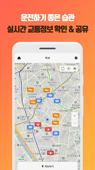 - 제보하기 : 내 주변 단속, 정체, 사고 등의 교통정보 제보 및 확인