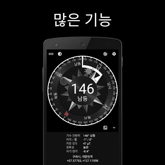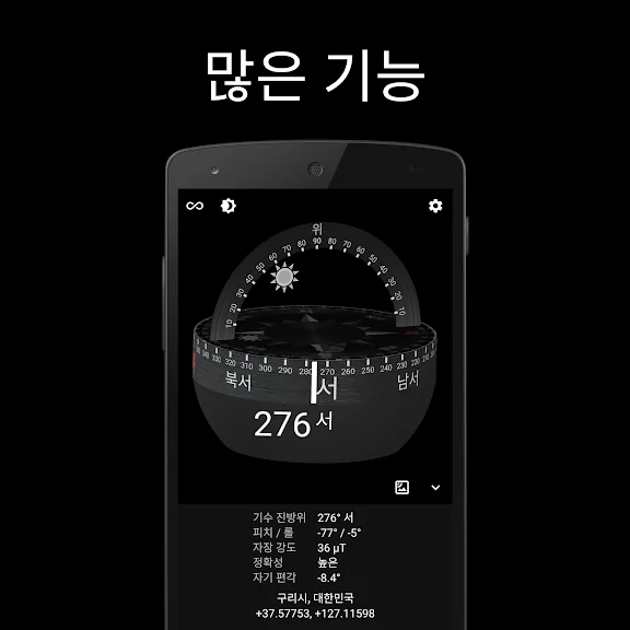 아래는 디지털 나침반 어플에 대한 스크린샷 정보입니다.