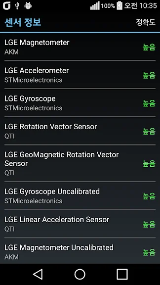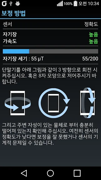 - 센서의 정확도를 표시하여 최상의 센서 상태를 유지할 수 있습니다.