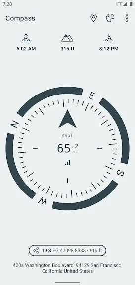 2) 나침반 (고도계, 일출, 일몰) 어플 스크린샷