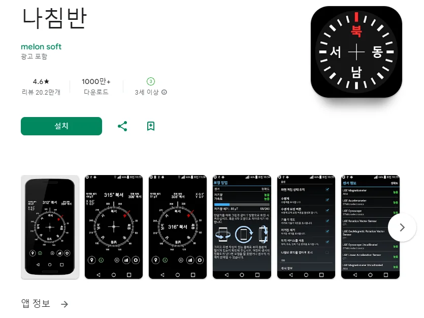 아래는 나침반 어플에 대한 스크린샷 정보입니다.