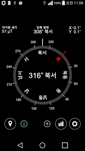 디지털 나침반 어플에 대한 스크린샷 정보가 필요하시다면 아래 이미지를 참고하시기 바랍니다.
