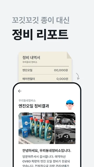 오일 교환, 브레이크 점검, 타이어 교환, 필터, 에어컨 청소. 이 모든 서비스는 앱에서 쉽게 볼 수 있습니다.