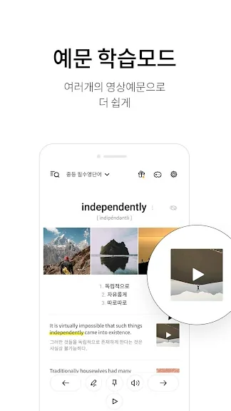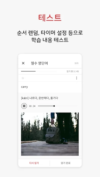 전문가의 음성 설명을 통해 단어의 발음 및 예문 등을 효율적으로 학습할 수 있고, 반복 청취는 물론 휴대폰 대기화면에서도 단어를 확인할 수 있습니다.