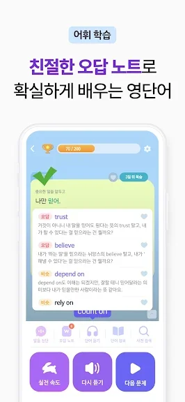 📍 [기억력 부스터]: 눈을 감고도 최근 7일 내 배운 문장들을 반복해서 들을 수 있어요.