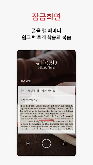 - 바쁜 출퇴근길에도 편하게! 휴대폰 잠금 화면에서 단어장을 바로 학습할 수 있어요.