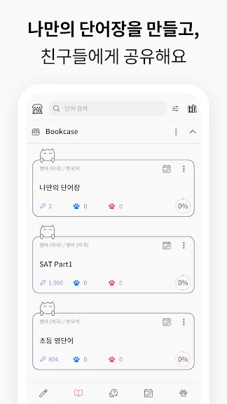 - 원하는 단어장은 북마크해서 언제든지 볼 수 있고, 나만의 단어장을 직접 만들 수도 있어요.
