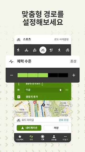 • 자전거 종류에 맞춰 완벽한 경로를 계획해보세요.