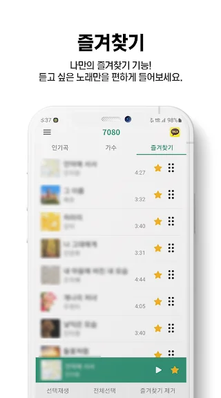 듣고 싶은 나만의 노래를 즐겨찾기로 추가하고, 편하게 들어보세요.