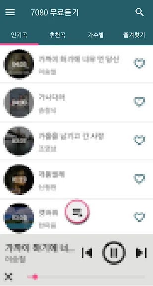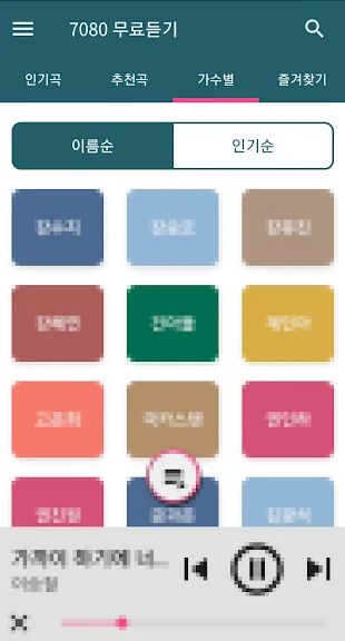 - 7080 가수별로 카테고리가 제공되어 가수별 노래 청취가 가능합니다.