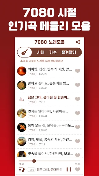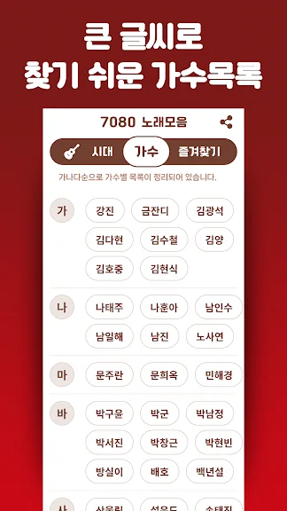 좋아하는 가수의 7080 노래를 쉽게 찾을 수 있습니다.
