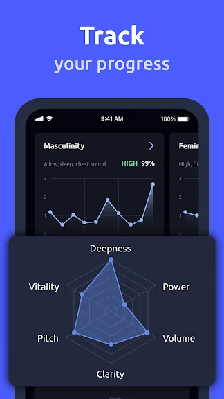이러한 기능 외에도 음성 복구 및 음성 여성화 또는 남성화를 위한 전문 프로그램뿐만 아니라 억양을 개선하고 명확하게 말할 수 있도록 도와주는 다양한 도구를 제공합니다. 저희 앱은 LGBTQ+ 커뮤니티에서 이러한 전문 프로그램으로 최고 등급을 받았습니다.