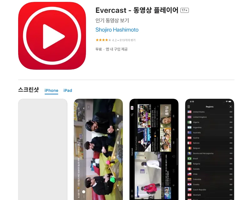 2. 아이폰 Evercast - 동영상 플레이어 앱