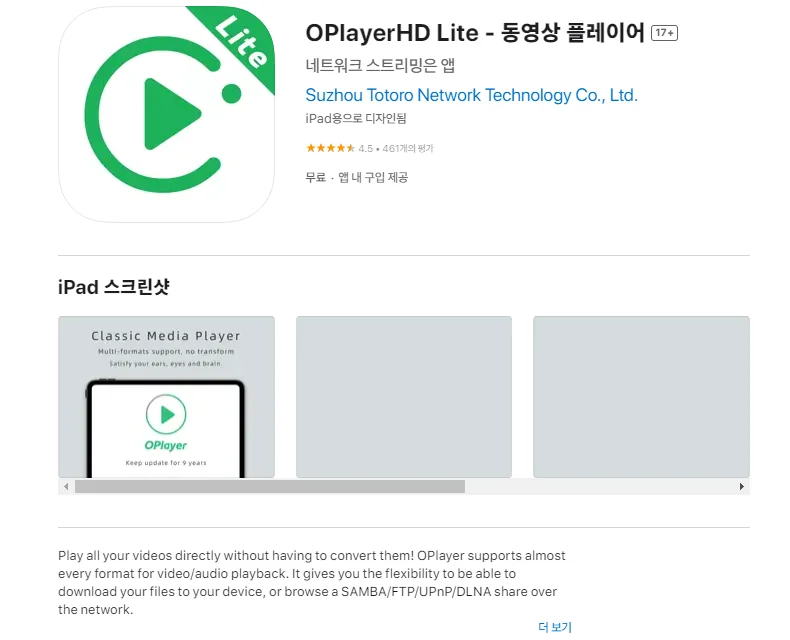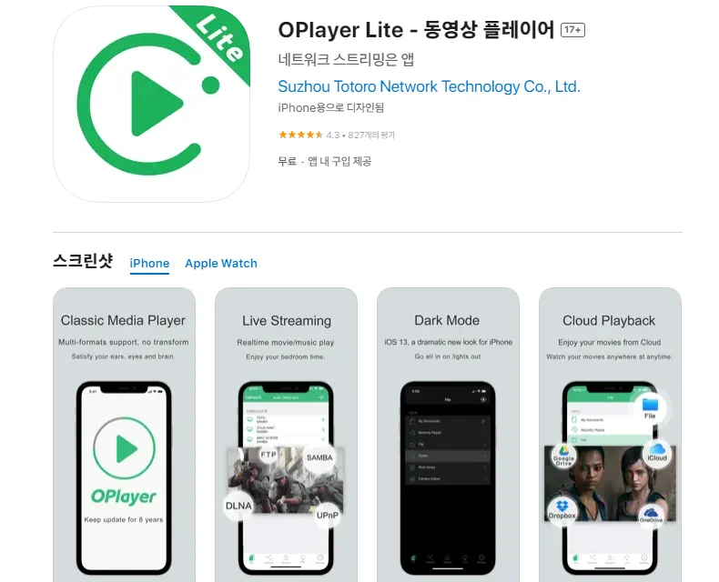 아래는 아이폰 OPlayer Lite - 동영상 플레이어 어플에 대한 자세한 설명입니다. 참고하세요.