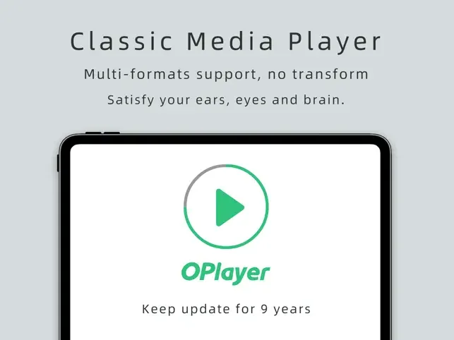 OPlayer는 다양한 격식을 지지하는 현지 플레이어고 영화를 직접적으로 컴퓨터에서 설비로 이동할 수 있습니다. 동시 FTP/SAMBA/UPnP/DLNA 등 인터넷 플레이도 지지됩니다. 이 플레이어는 50여개 버전을 발포했고, 애플 App Store에 있는 최초의 핸드폰 플레이어로서 OPlayer는 지지하는 격식을 더 전면적이고 소프트웨어 더 안정하고 기능이 더 풍부하고 사용이 더 간단합니다.