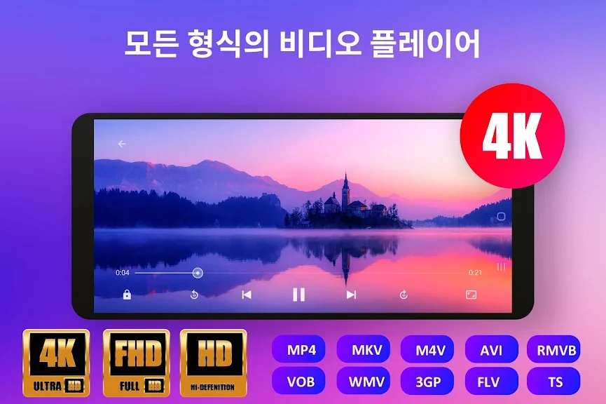 ● 비디오 플레이어는 MP4, MOV, M4V, MKV, WMV, RMVB, FLV, AVI, 3GP, TS 등 모든 비디오 형식을 지원합니다.