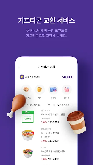 · 포인트를 카페, 편의점, 영화관 등 167개의 기프티콘으로 교환하기