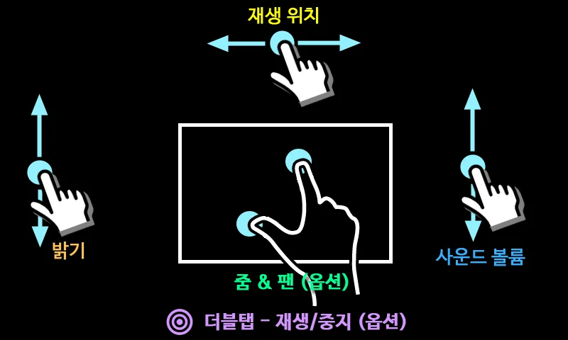 ● 멀티 재생 옵션: 자동 회전, 가로 세로 비율, 화면 잠금 등.