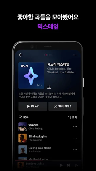 재생되는 모든 플레이리스트가 노래 목록과 분리되어, 내가 골라듣는 노래와 섞이지 않아요.