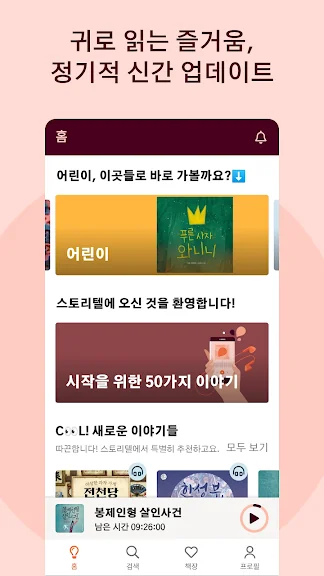 언제 어디서 무얼 하시든, 내게 맞는 이야기를 곧바로 찾아 들으실 수 있어요.