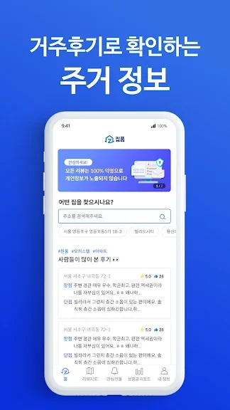 - 집 알아보기, 집 구하기, 다양한 부동산 앱 으로 확인할 때 거주후기 로 꼼꼼하게 살펴볼 수 있어요.