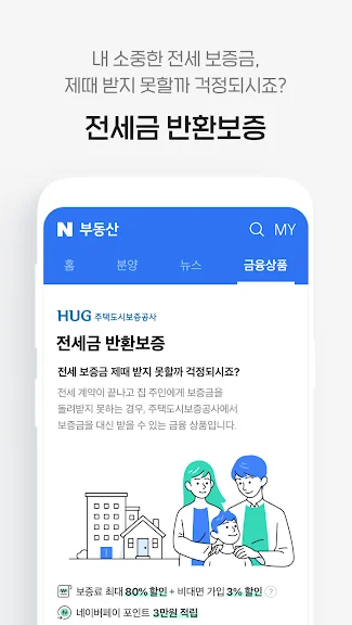 전세금을 안전하게 보호하고 싶으신가요? 주택도시보증공사(HUG)와의 제휴를 통해 모바일로 쉽게 가입하는 '전세금 반환보증' 서비스를 제공합니다!