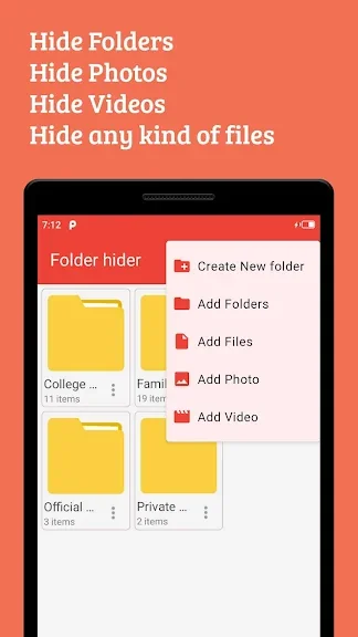 폴더 숨김은 폴더, 사진, 비디오, 오디오, 문서 및 모든 종류의 파일을 잠급니다.