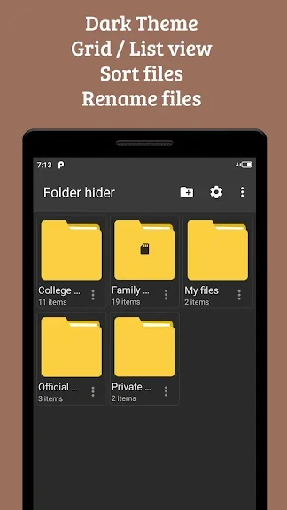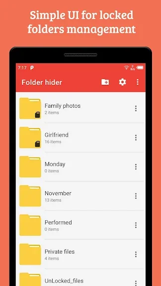 폴더 숨기기는 가장 기억에 남는 파일을 보관할 수 있는 개인 보관함이며 휴대전화를 사용하는 친구가 파일 관리자나 응용 프로그램을 탐색할 때 개인 파일을 볼 수 없도록 합니다.
