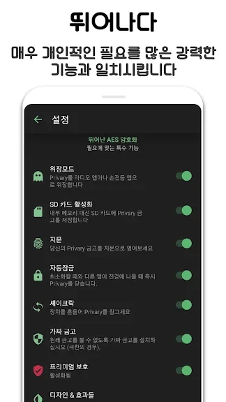 간편한 암호화를 통해 지금 여러분의 개인 정보를 보호하세요. 아주 개인적인 사진과 비디오를, 여러분 만의 AES CTR로 안전하게 보호되는 비밀 사진/비디오 금고에 저장하세요.