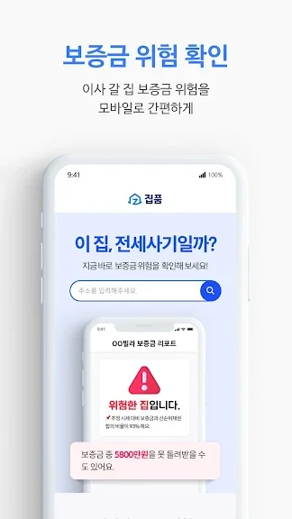 - 안심전세 보증금, 월세 보증금, 전세사기, 깡통전세, 집품 보증금 리포트로 확인하고 전세사기 예방해요.
