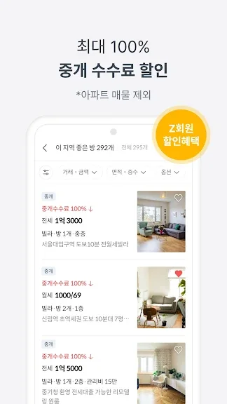 피터팬 Z회원이라면 중개수수료 최대 100% 무제한 할인 가능!